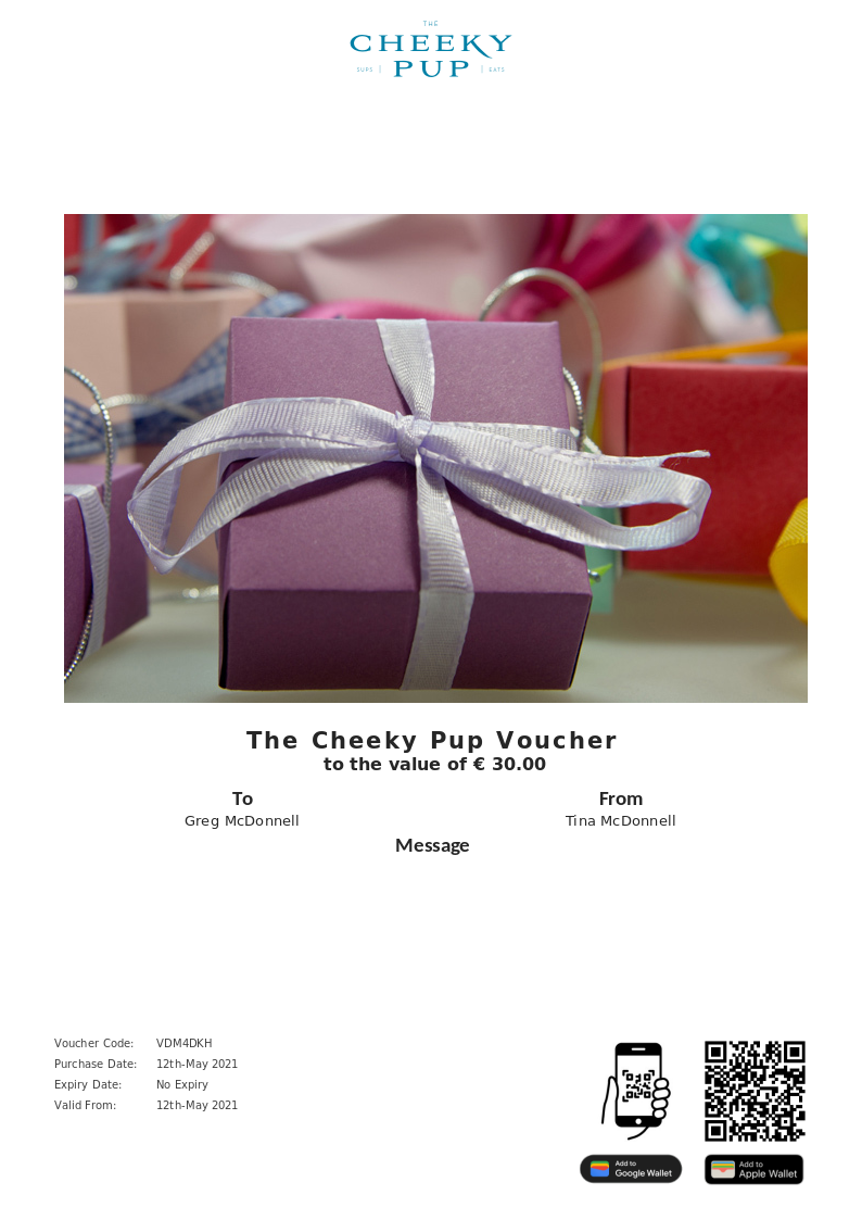 The Cheeky Pup allows you to purchase instantly printable gift vouchers, special offers and tickets using the Voucher Connect platform.